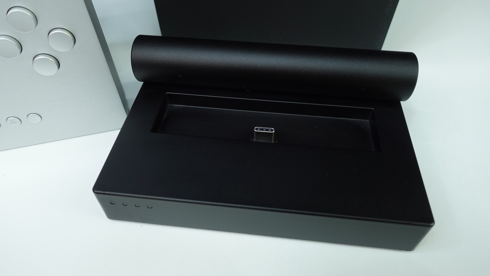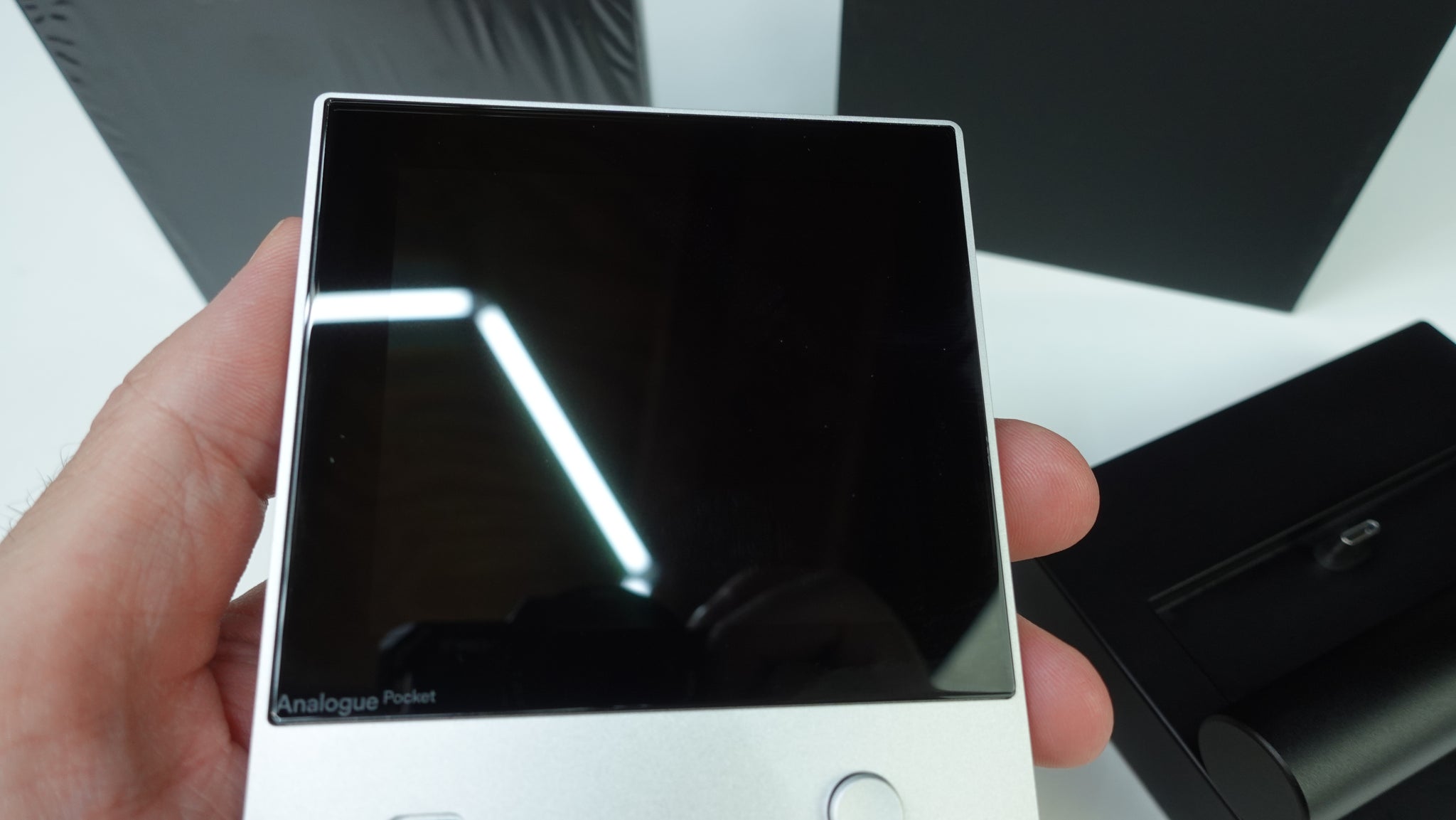 The Aluminum Pocket has minor wear. See pics. There is a tiny scratch on the back cartridge slot area, which has been covered with a vinyl protector, shown in pics both with and without the protector. Overall in great condition. Latest firmware installed on both the dock and the Pocket.