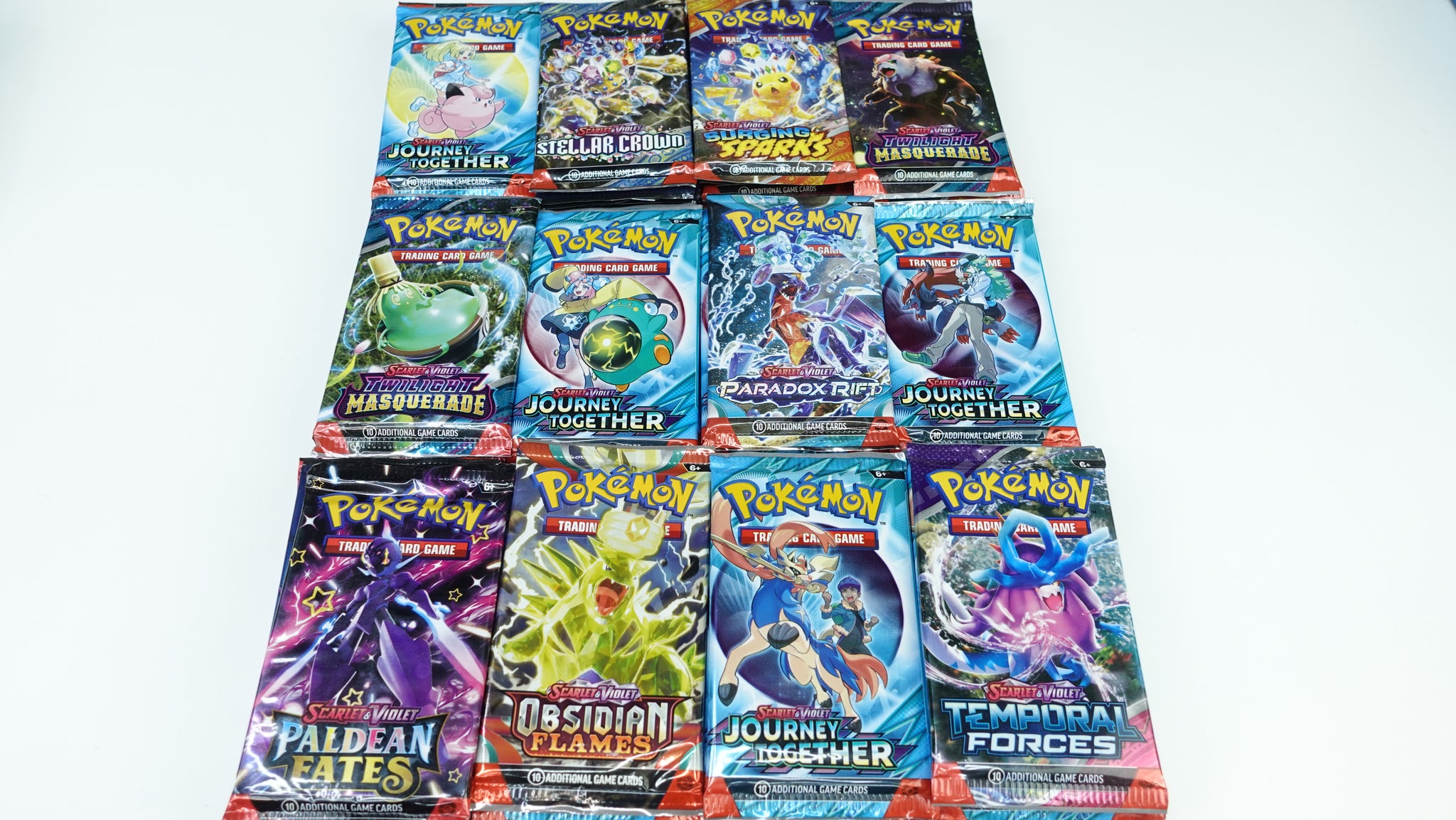 2 sealed Packs of Pokemon TCG, Most will get a Journey Together plus another pack from Scarlett & Violet era... like Paradox Rift, Twilight Masquerade, Surging Sparks or Stellar Crown. There are a few older packs tossed in from previous generations, and some packs will get more than 2 packs... but everyone is guaranteed 2 packs at minimum, plenty have extra packs as a bonus.